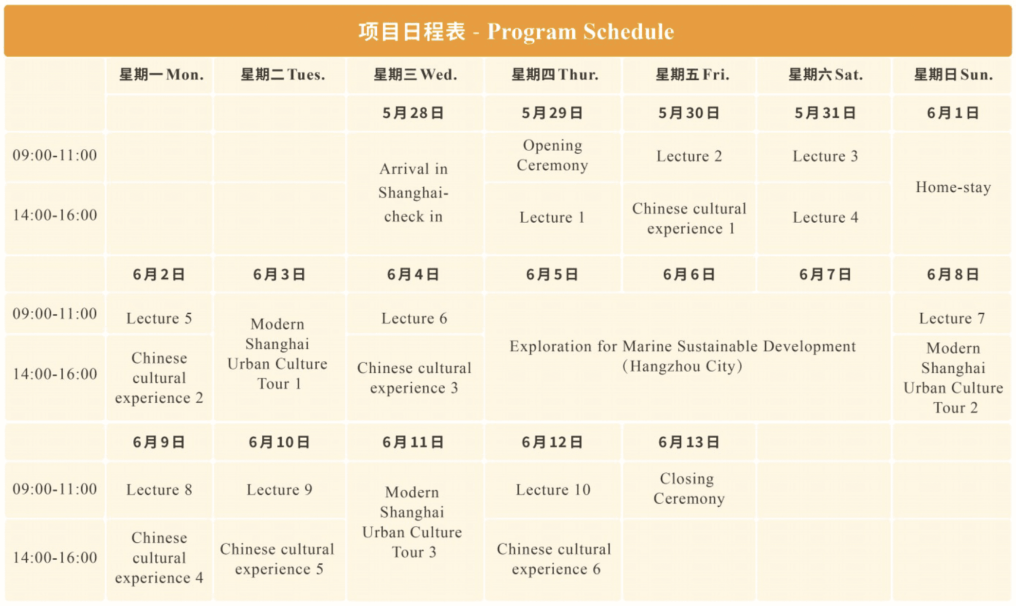 Program participants will receive a certificate of completion from Shanghai Ocean University (top #12 in Shanghai).
